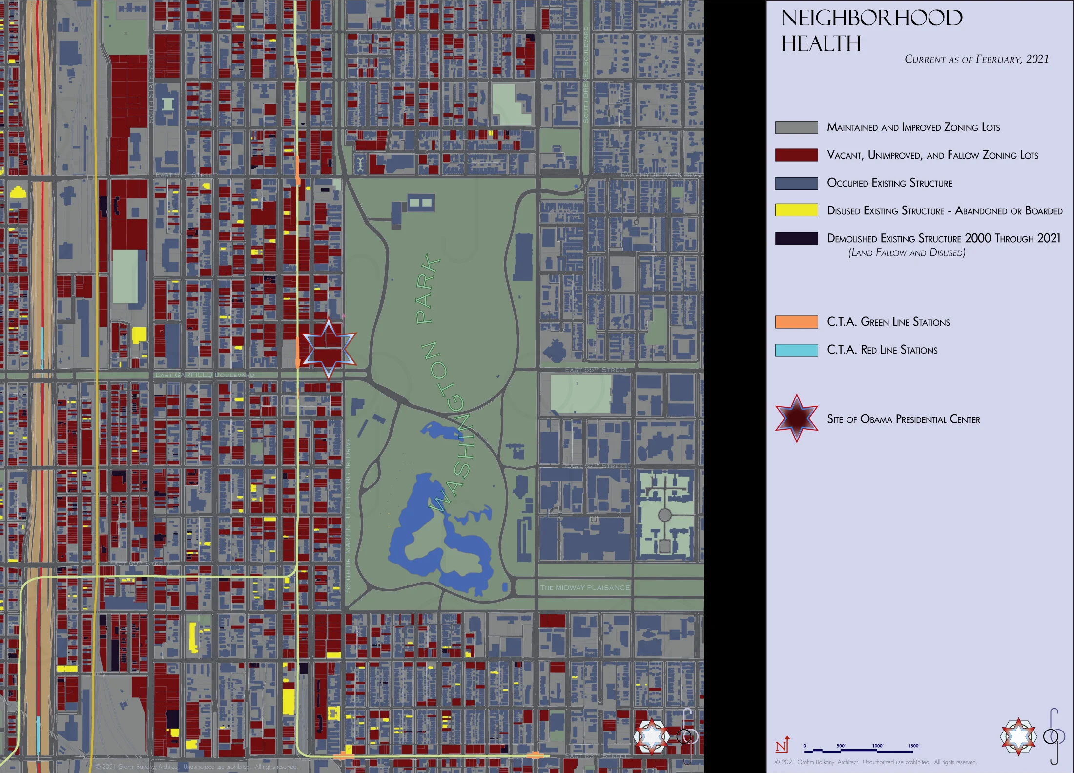 The proposed site of the Obama Presidential Center is bordered by the neighborhoods of Washington Park, Grand Boulevard, and Woodlawn. All predominantly African American in makeup, these communities have suffered tremendous population loss over the decades.